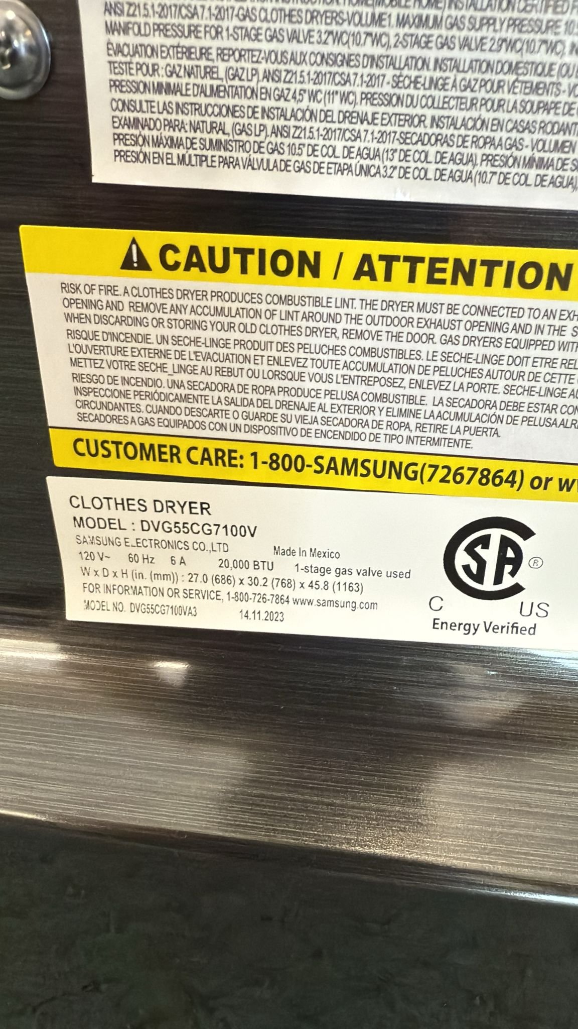 Samsung Used 27 Inch Smart Gas Dryer